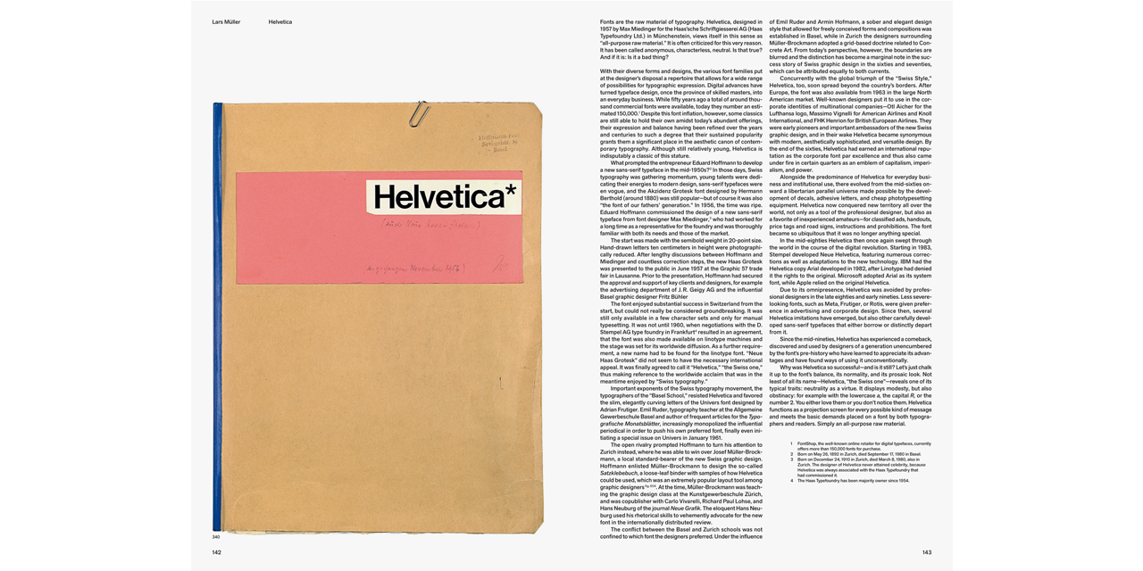 With texts by the editors and Hans-Rudolf Bosshard, Christoph Bignens, Max Bruinsma, Jürgen Döring, Meret Ernst, Ulrike Felsing, Roland Früh, Ariel Herbez, Richard Hollis, Martin Jaeggi, Andres Janser, Roxane Jubert, Urs Lehni, Claude Lichtenstein, Kerry William Purcell, François Rappo, Jörg Stürzebecher, Ruedi Widmer.