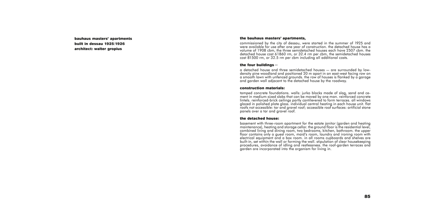 In his third and last contribution within the Bauhausbücher series, the founder and long-standing director of the Bauhaus, Walter Gropius, gives a comprehensive overview of the Bauhaus in Dessau. In addition to a brief outline of the origins and development of the school, Gropius presents the architectural design of the new Bauhaus building and the associated Masters’ Houses with the help of photographic documentary evidence and planning sketches. In the book, he traces the technical planning development with extreme precision and provides an insight into the design practice of the “Bauhäusler.