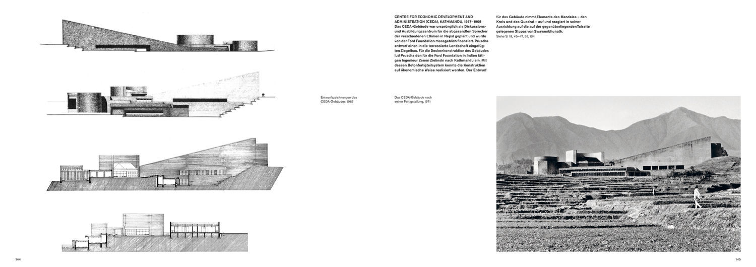 Essays von Manjushree Thapa und Natalie Lettner, das Nachwort von Michael Sorkin sowie fotografische Dokumentationen von Iwan Baan und Hertha Hurnaus führen neben Portfolios von Pruschas Projekten durch sein eigenwilliges Werk und bewegtes Leben.