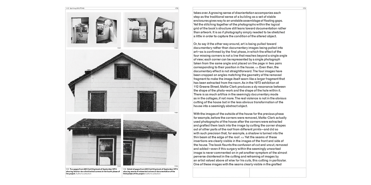 The Anarchitecture group show at the fabled 112 Greene Street gallery – an artistic epicenter of New York’s downtown scene in the 1970s – in March 1974 has been the subject of an enduring discussion, despite a complete lack of documentation about it. Anarchitecture, a collective challenging all conventional understandings of architecture, has become a foundational myth, but one that remains to be properly understood. Cutting Matta-Clark investigates the group through extensive interviews with the protagonists and a dossier of all the available evidence.
