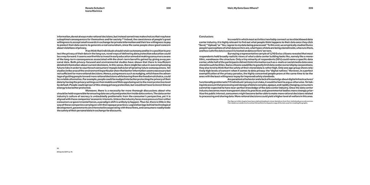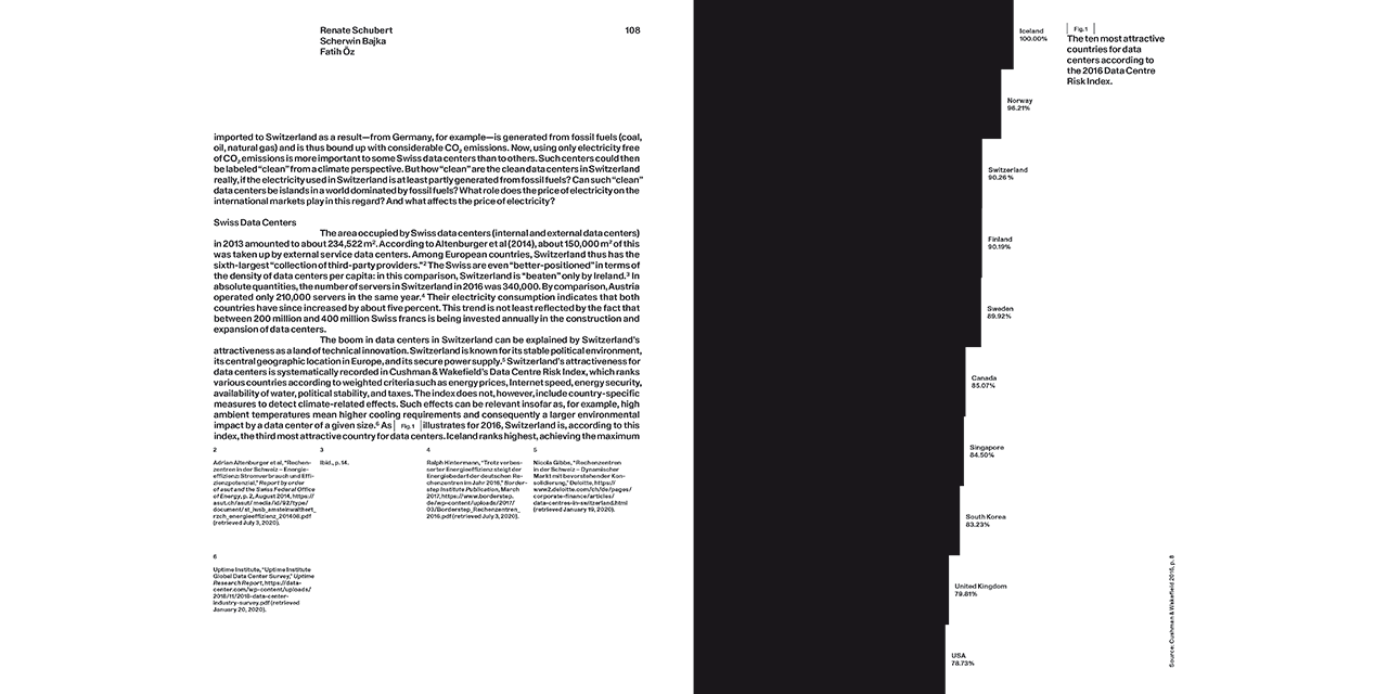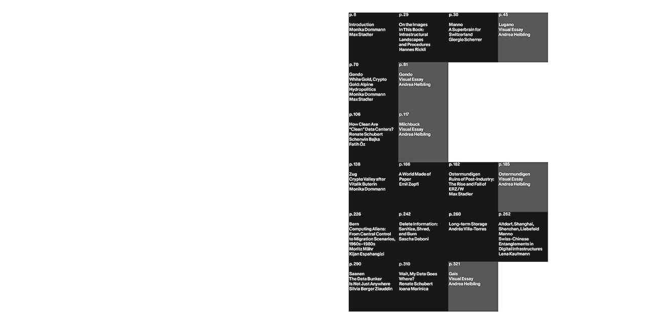 Questions of privacy, borders, and nationhood are increasingly shaping the way we think about all things digital. Data Centers brings together essays and photographic documentation that analyze recent and ongoing developments. Taking Switzerland as an example, the book takes a look at the country's data centers, law firms, corporations, and government institutions that are involved in the creation, maintenance, and regulation of digital infrastructures. Beneath the official storyline—Switzerland’s moderate climate, political stability, and relatively clean energy mix—the book uncovers a much more varied and sometimes contradictory set of narratives.