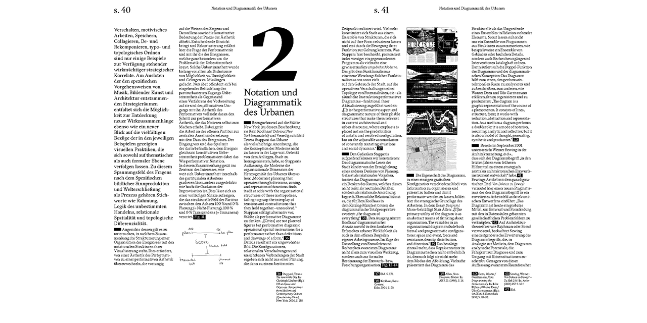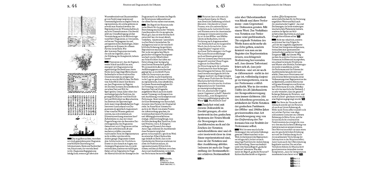 In seiner jüngsten Publikation skizziert Christopher Dell eine «offene Stadt-Partitur». Der Begriff bezieht sich weder auf die Darstellung einer urbanen Klangtextur, noch wird die Stadt in einem ästhetischen Sinn oder im Sinn von Musikprogrammierung interpretiert. Stattdessen werden städtische Prozesse in neuer Form sichtbar gemacht, indem eine musikalische Art der Konzeption von Raum als Filter und Perspektive eingesetzt wird; denn Zeitlichkeit und die Dimension des aktiven Tuns sind bei der Enthüllung von visuellen Strukturen praktischer, städtebaulicher Phänomenen wichtige Komponenten.