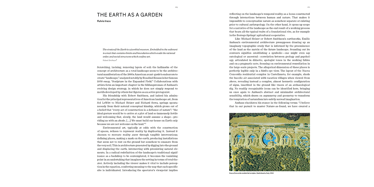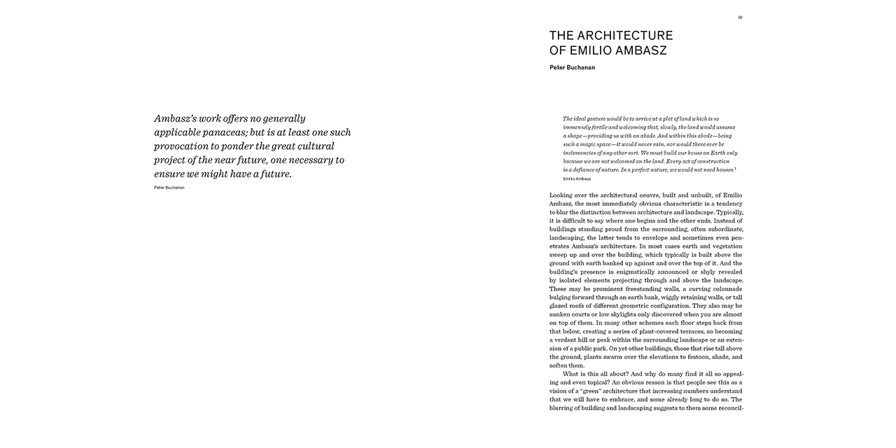 "Few architects understand how to harmonize architecture and nature as harmoniously as Emilio Ambasz, a pioneer of green architecture. This book is not only a documentation of the architect and designer's work, but also a tribute."