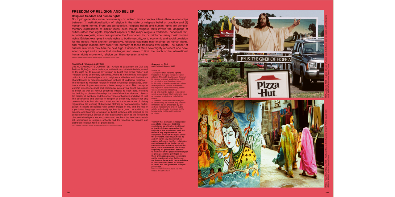 “All men are born free and have an equal right to freedom,” states the UN Convention on Human Rights. Almost all nations have signed treaties to this effect, and yet reality looks rather different: everywhere people are tortured and executed, children starve to death and women are raped. And yet the work of the countless human rights activists all over the world is worth while. Proceedings can be instituted against states that fail to meet requirements, as human rights are internationally enshrined. One of humanity's essential tasks is to implement them. This visual reader wants to make a contribution.
