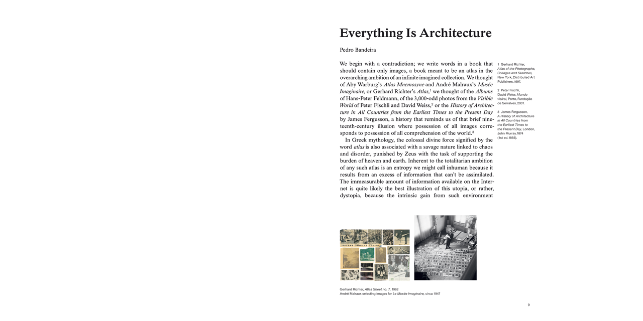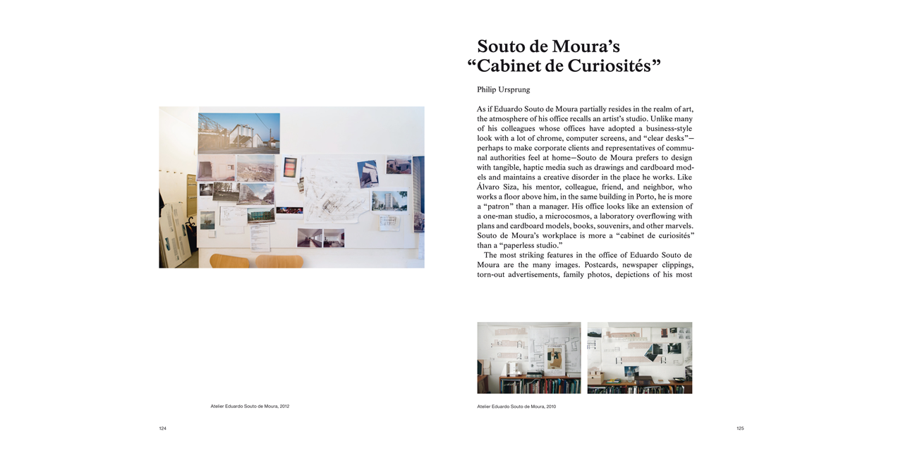 Photographs, newspaper cuttings, postcards, drawings, and slides: on entering the studio of Eduardo Souto de Moura, winner of the Pritzker Prize 2011, one is confronted with a variety of images on the walls that engage in a dialogue. How do these photos, drawings, and illustrations impact his design practice? What is the relationship between the image and the completed building? Floating Images: Eduardo Souto de Moura’s Wall Atlas uses this question as an opportunity to examine the architect’s visual universe. He has added images from his extensive collection of drawings and project sketches and reorganized them in this atlas. Complex relationships are formed between the individual illustrations and projects. Essays by Pedro Bandeira, Eduardo Souto de Moura, Diogo Seixas Lopes, and Philip Ursprung round off the publication and provide a contextualization in terms of the history of art and images.