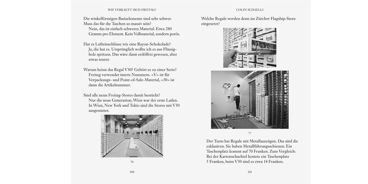 With its unique bags made of used materials, the Freitag company of Zürich is now an established commercial success, selling 300,000 of its design products around the world every year. How can a bag achieve that kind of cult status? How did a small, creative start-up become a large brand with a strong identity? Freitag – Out of the Bag investigates this story. Extensively illustrated interviews with the brothers Daniel and Markus Freitag and their coworkers and collaborators in the fields of product design, manufacturing, distributing, and marketing offer a look behind the scenes at the company, which manages as a brand to embody — through often humorous and ironic communications strategies — the paradox of an individualistic mass product.