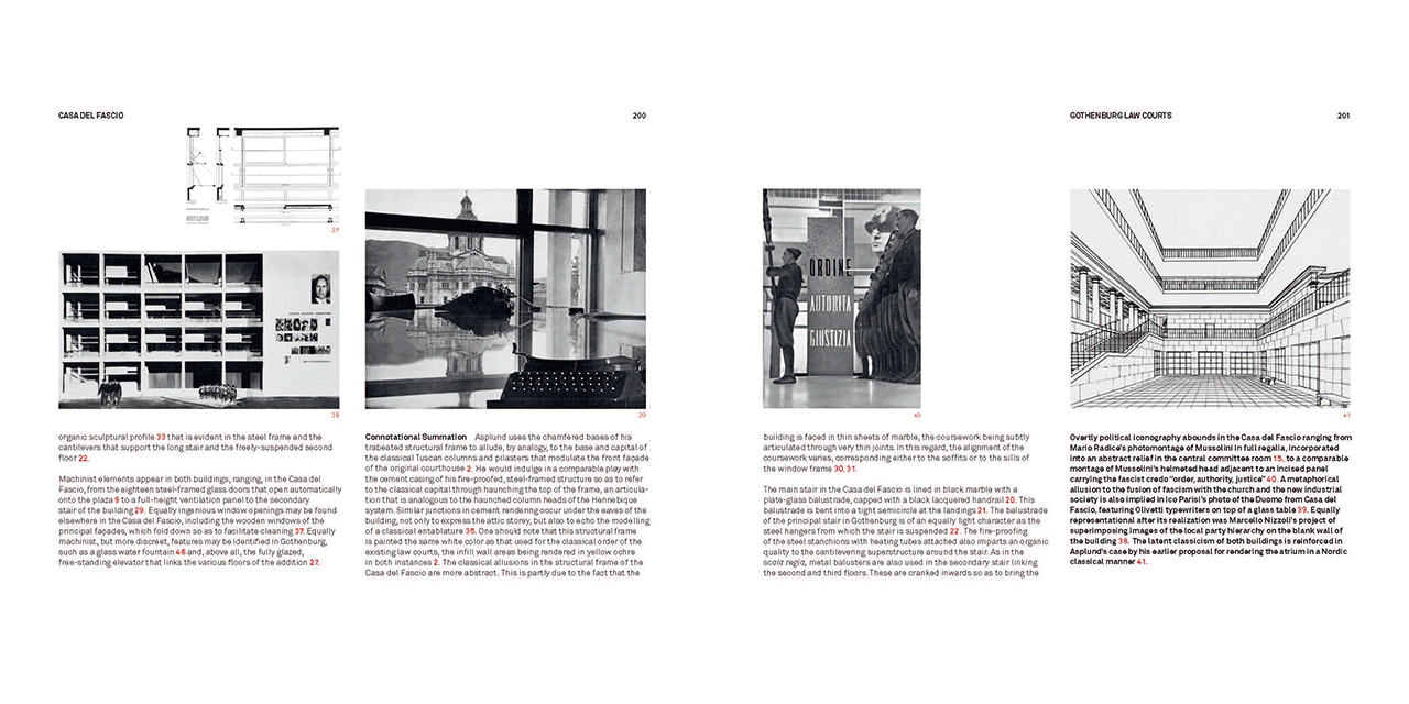 The buildings are compared in terms of their hierarchical spatial order, circulation structure and referential details. The analyses are organized so as to show what is similar and different between two paired types, thus revealing how modern tradition has been diversely inflected.
