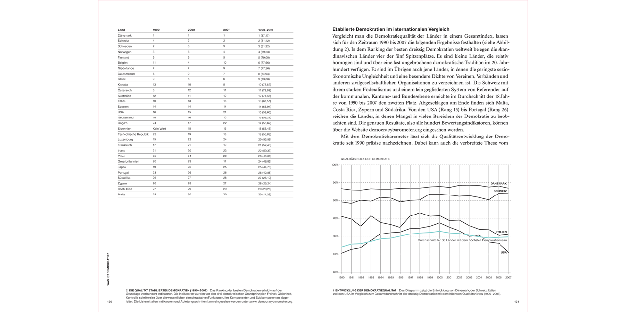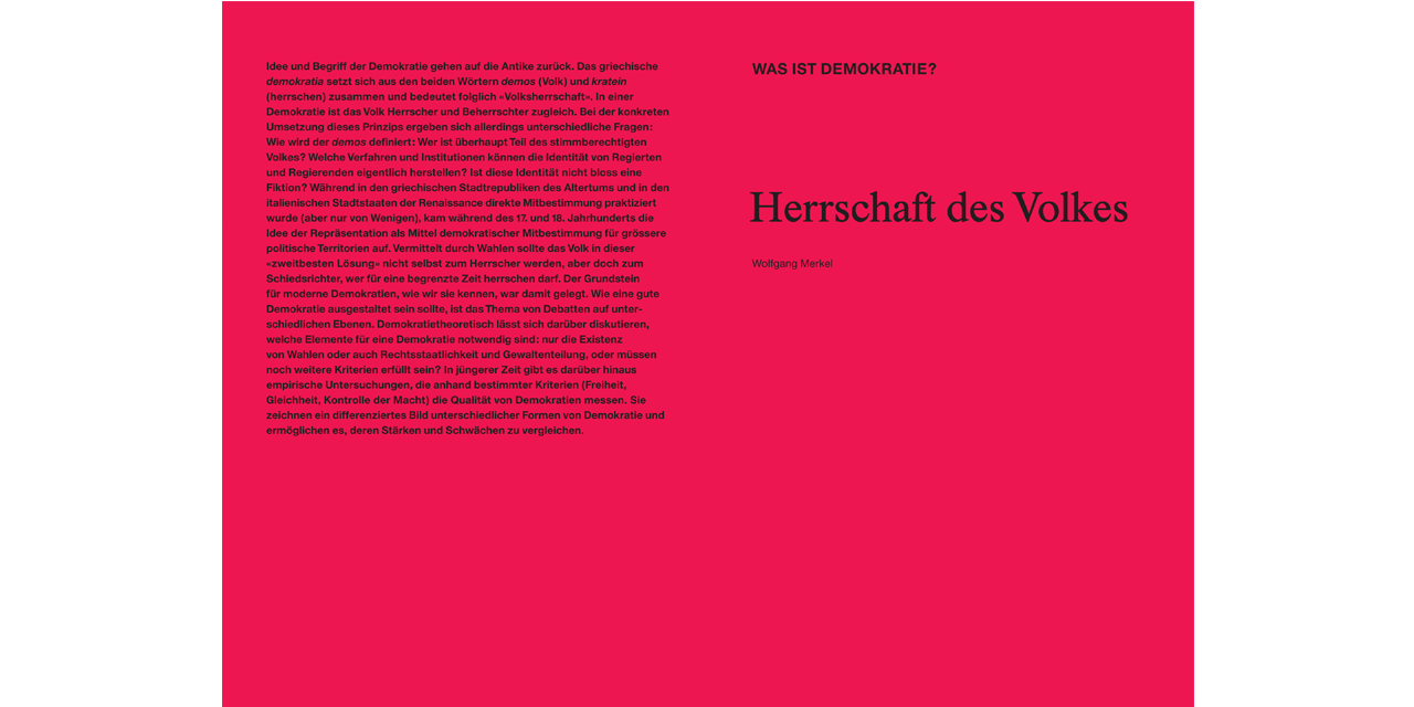 Seit der Antike und bis heute wird darüber diskutiert, ob Demokratie nun die beste Staatsform sei und welches die Merkmale einer guten Demokratie sind. Sicherlich gibt es nicht die «perfekte» Demokratie. Demokratisch regierte Staaten stellen sich der schwierigen Balance zwischen Gleichheit und Freiheit, Mehrheit und Minderheit, einer geordneten Gemeinschaft und einem lebendigen Meinungspluralismus. Demokratie fordert – und ist als System selbst gefordert, angesichts von Globalisierung und digitaler Medienentwicklung. Vor diesem Hintergrund und aufgrund der politischen und wirtschaftlichen Entwicklungen in Asien oder in der arabischen Welt wird immer wieder gefragt, ob die Demokratie noch zeitgemäss sei. Aber ja! Demokratien sind leistungsfähiger und friedenssichernder als andere Regierungsformen.