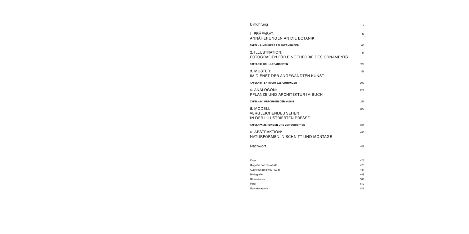Karl Blossfeldt: Variationen ist die erste ausführliche Monografie, die sich ganz der Rezeption von Blossfeldts Werk widmet. Anhand von unveröffentlichten Materialien analysiert Ulrike Meyer Stump die Vervielfältigung von Blossfeldts Fotografien in Lehrmitteln, Musterbüchern, Kunstbänden und in der illustrierten Presse. In sechs Kapiteln zeichnet die reich bebilderten Studie die Wege nach, die Blossfeldts legendäre Pflanzenmotive von 1890 bis 1945 genommen haben – als Präparate, Illustrationen, Analoga, Modelle und Abstraktionen. Thematische Ausflüge in die Gegenwart illustrieren die Wiederentdeckung von Blossfeldts Motiven in Design und Architektur der letzten zwei Jahrzehnte und gewähren eine zeitgenössische Perspektive auf den berühmten deutschen Fotografen.