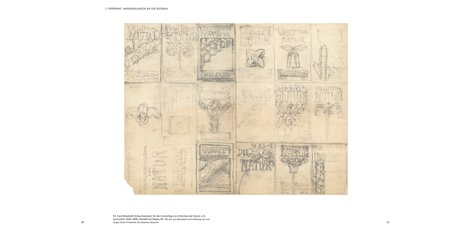 In den 1890er-Jahren begann der Berliner Künstler, Bildhauer und Dozent Karl Blossfeldt mit dem Fotografieren von Pflanzen, Samen und anderen Naturmaterialien, um seinen Schülern in der Natur vorkommende Muster und Formen zu zeigen. Seine Nahaufnahmen kleinster Pflanzenteile, die er bis zu 30 Mal vergrösserte, überraschen durch ihr geometrisches und skulpturales Erscheinungsbild. Blossfeldts Fotosammlung wurde erstmals 1928 unter dem Titel Urformen der Kunst veröffentlicht und war eine Sensation. Die Publikation wurde zu einem internationalen Bestseller und bleibt bis heute eines der bedeutendsten Fotobücher des 20. Jahrhunderts.