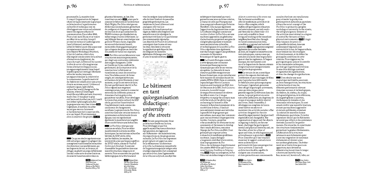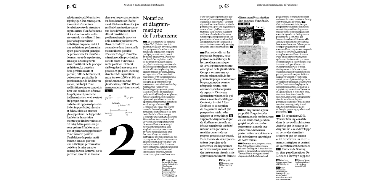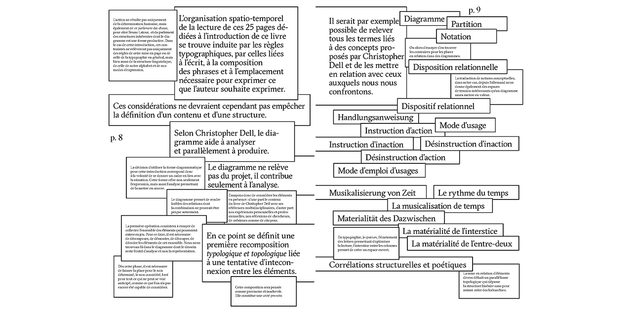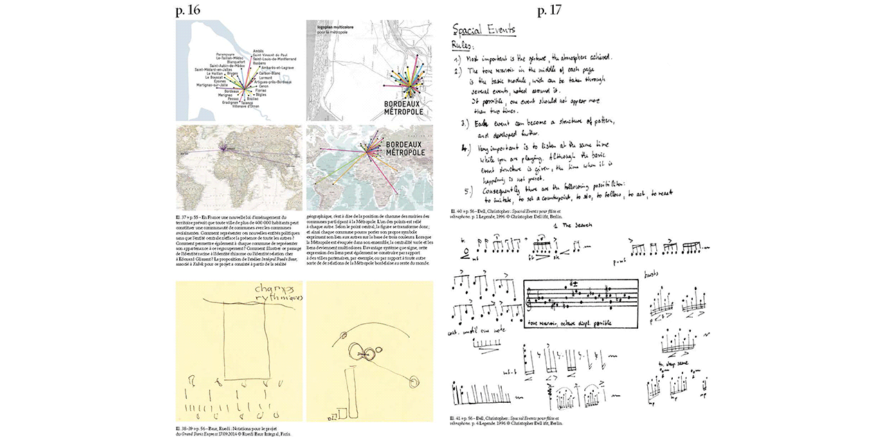 A “partition” (score) is a special representational form. It is linked to instructions for action and looks forward rather than backward: to the planning of a forthcoming event. The “open score” goes one step further: it articulates the process of producing new realities and their indeterminacy. In his latest publication, Christopher Dell sketches an “open-ended city score.” The term does not refer to a representation of urban sound texture, nor is the city interpreted in an aestheticizing or musicprogramming sense. Instead, urban processes are rendered visible in a new form, by deploying a musical mode of spatial conception as a filter and perspective. For temporality and the dimension of action are vital components in unveiling the visual structures of phenomena in urban practice.