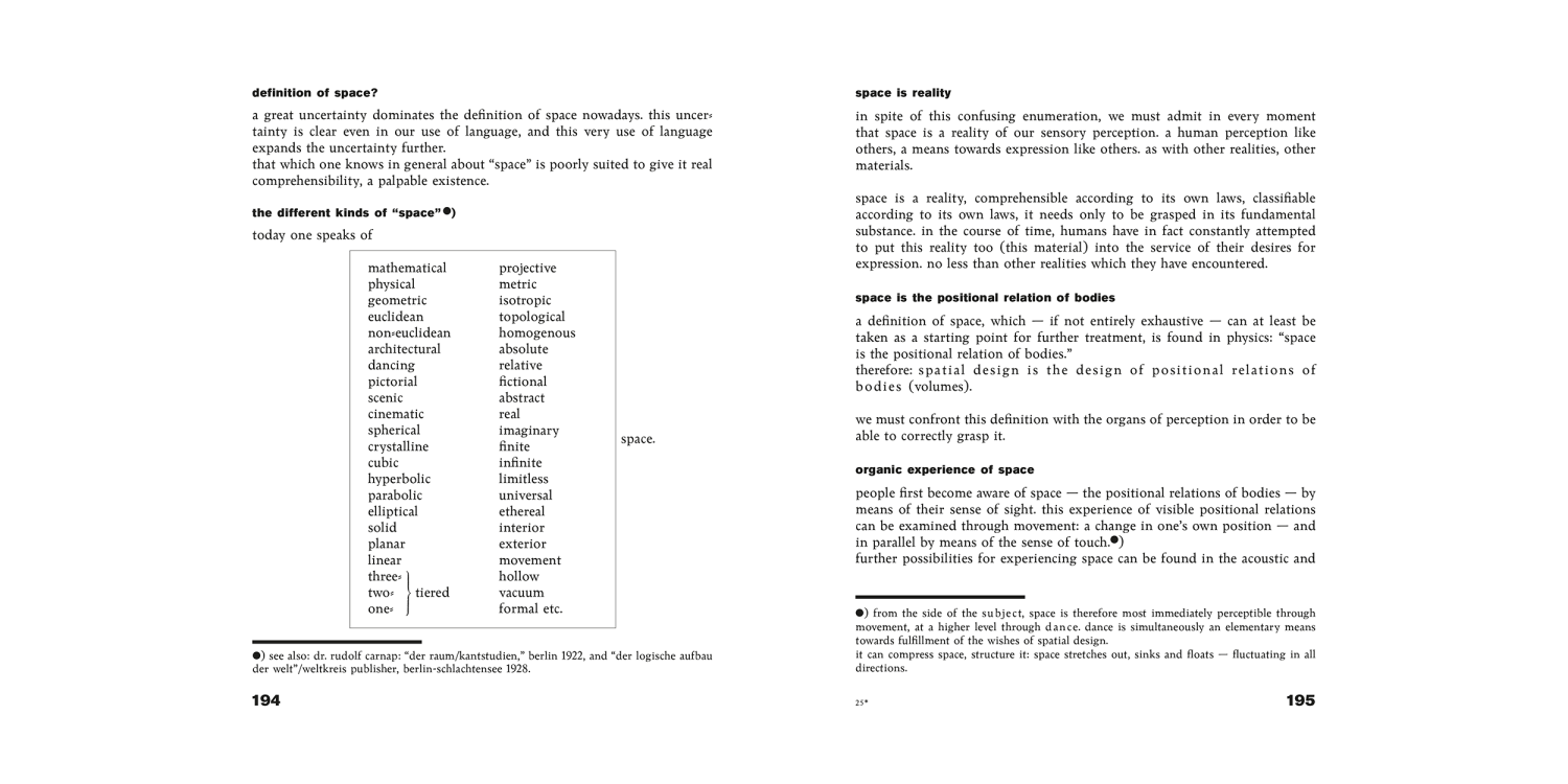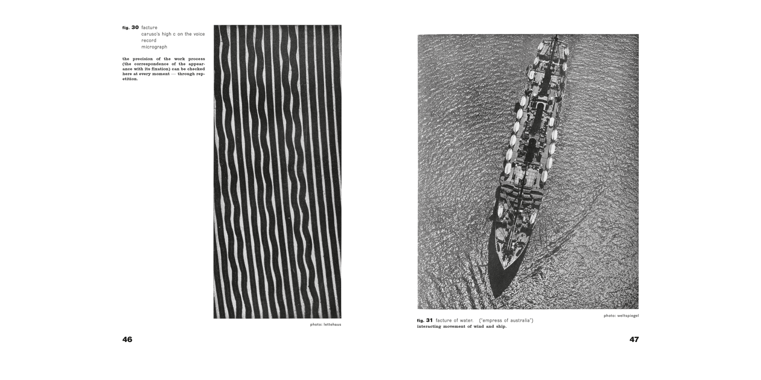 Moholy-Nagy’s second contribution within the series (he also wrote Painting, Photography, Film, volume 8) searches “for the closest connection between art, science and technology by aiming for the training of finer sensory perception.”