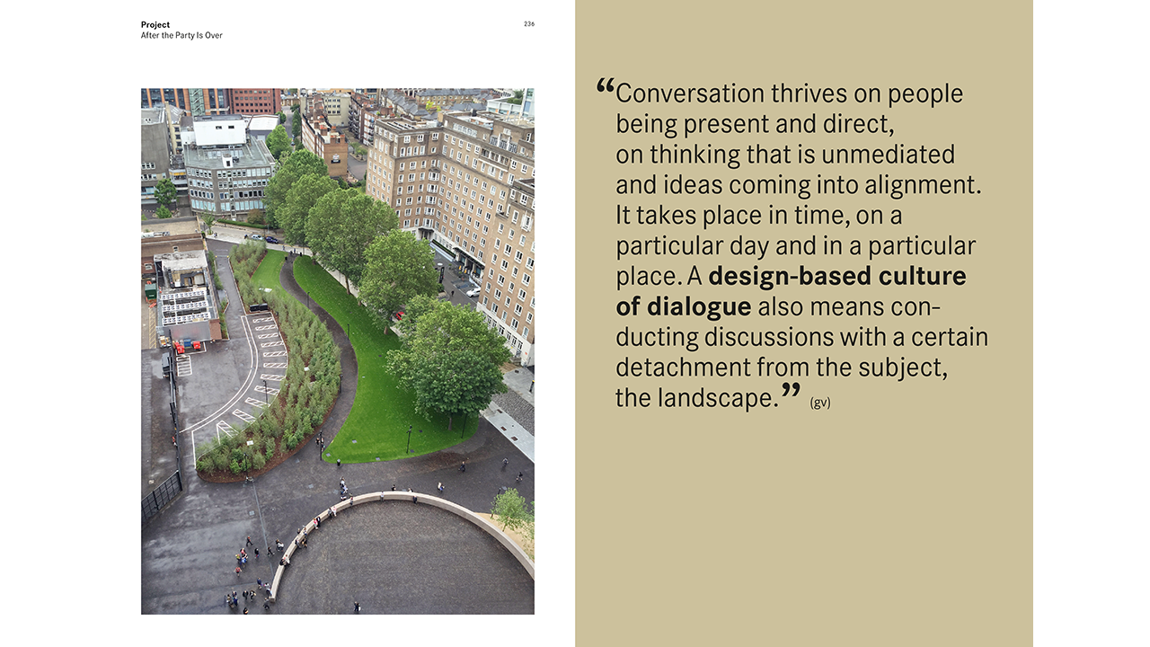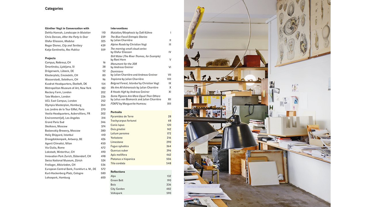 Anyone viewing what we call a “landscape” from a distance will recognize that it is an artifact, a habitat created by humans as part of our built environment. Designing this realm carefully is a discipline that is taking on increasing importance today. Günter Vogt, with his practice in VOGT Landscape Architects and as a professor at ETH Zürich, has developed a set of tools and a working method that incorporate all the different dimensions of the human-designed environment, from the large-scale landscape to the small-scale urban public space.