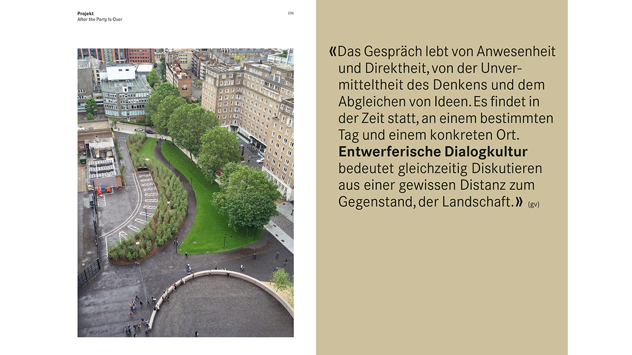 Wer aus der Distanz betrachtet, was wir „Landschaft“ nennen, wird erkennen, dass es sich dabei um ein Artefakt handelt, um einen Lebensraum, von Menschen geschaffen als Teil der gebauten Stadt. Die Gestaltung dieses Raums ist eine Disziplin von zunehmender Bedeutung. Günther Vogt hat mit VOGT Landschaftsarchitekten und als Professor an der ETH Zürich ein Instrumentarium geschaffen und eine Arbeitsweise entwickelt, welche von der grossmassstäblichen Landschaft bis zum kleingliedrigen öffentlichen Stadtraum alle Dimensionen der gestalteten Umwelt einbeziehen.