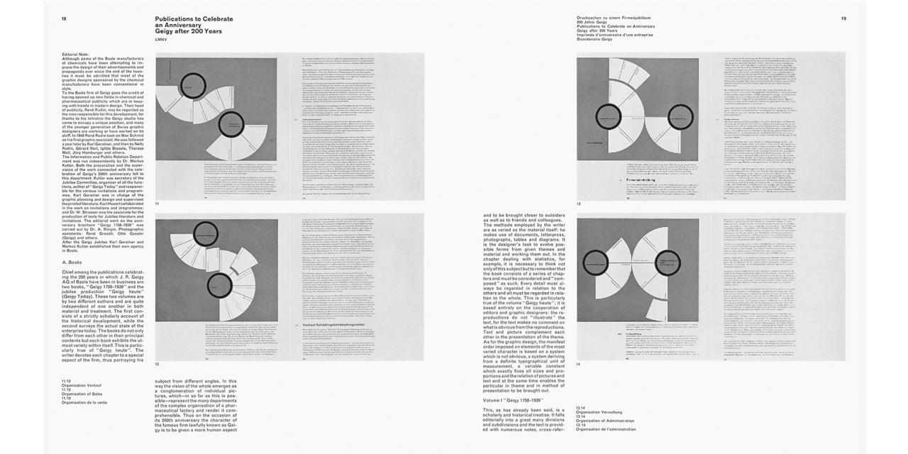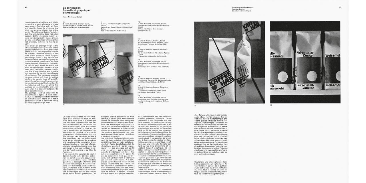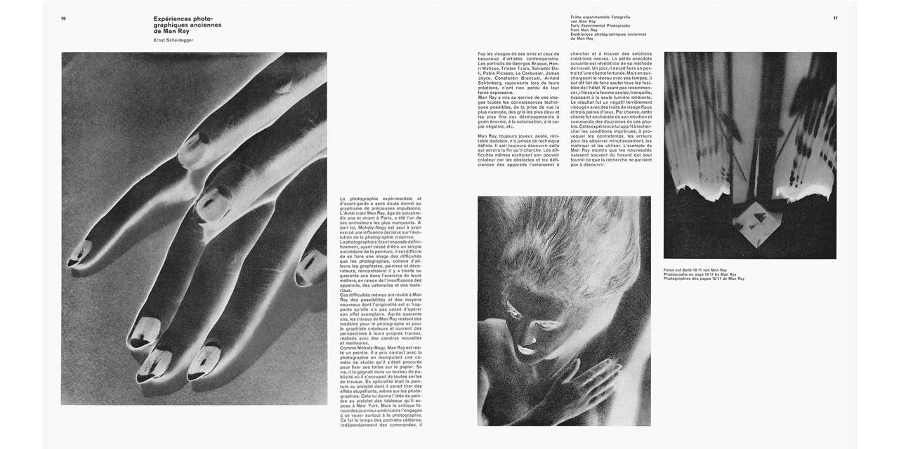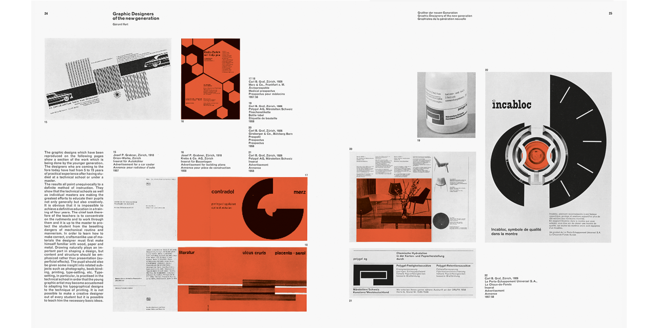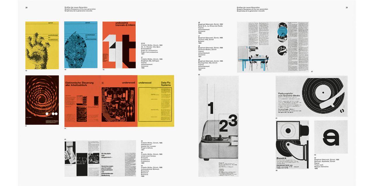From a historical point of view, Neue Grafik can be seen as a programmatic platform and effective publishing organ of Swiss graphic design, an international authority in its field at the time. Protagonists of the Swiss school and its rigorous Zurich fraction lead an essential discourse on the foundations of current communication and constructive design. The influence of this movement cannot be overstated. The Swiss school, also called “International Style”, became exemplary for the conceptual approach to corporate design of increasingly globally operating corporations and an influential precursor in the design of individual projects, such as posters, exhibitions, and publications.