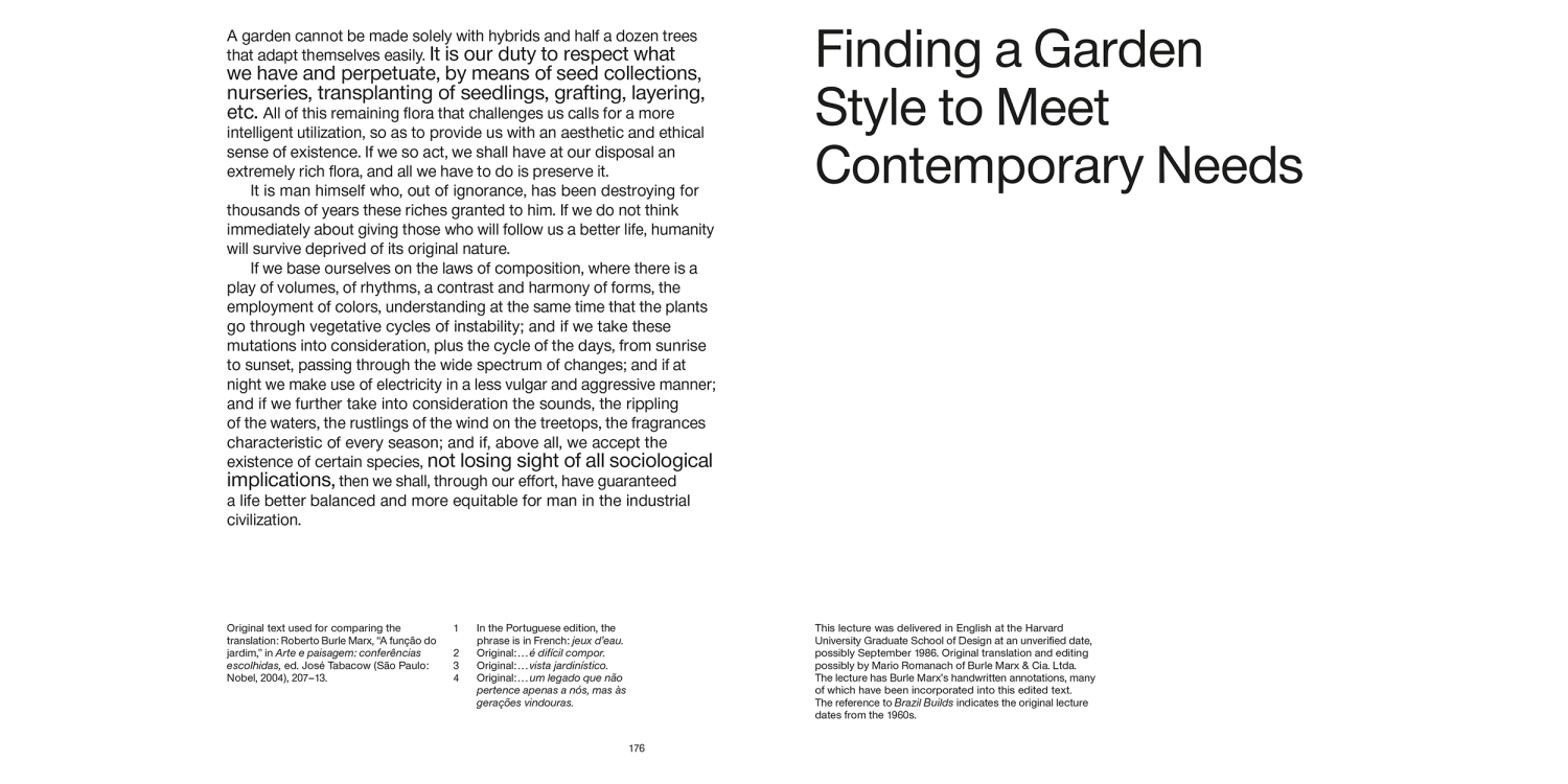 Roberto Burle Marx (1909–1994) remains one of the most important landscape architects in the history of the field. His distinctive and widely acclaimed work has been featured and referenced in numerous sources, yet few of Burle Marx’s own words have been published.