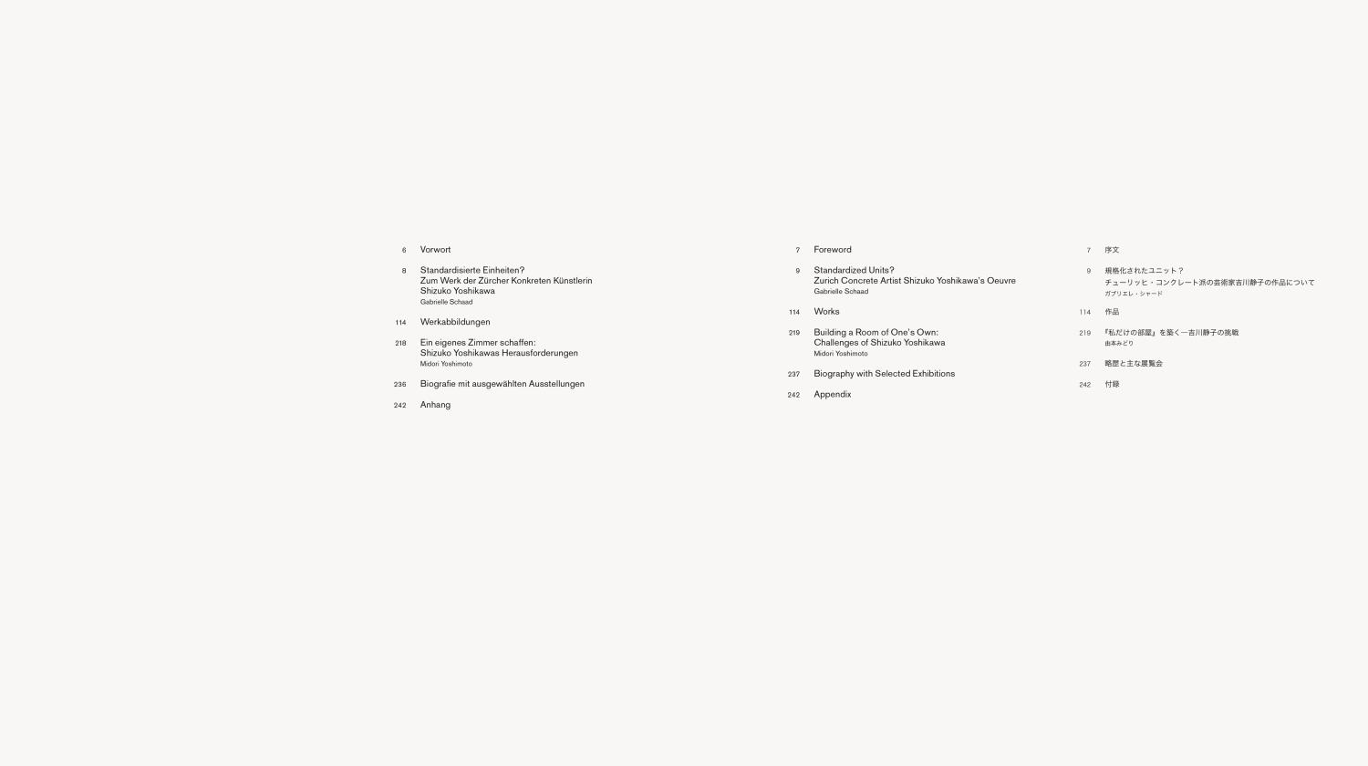 This book, initiated by the Shizuko Yoshikawa and Josef Müller-Brockmann Foundation, contains a major essay by art historian Gabrielle Schaad and a contribution by Prof. Midori Yoshimoto, highlighting the life of the artist and interpreting her oeuvre in the Japanese context.
