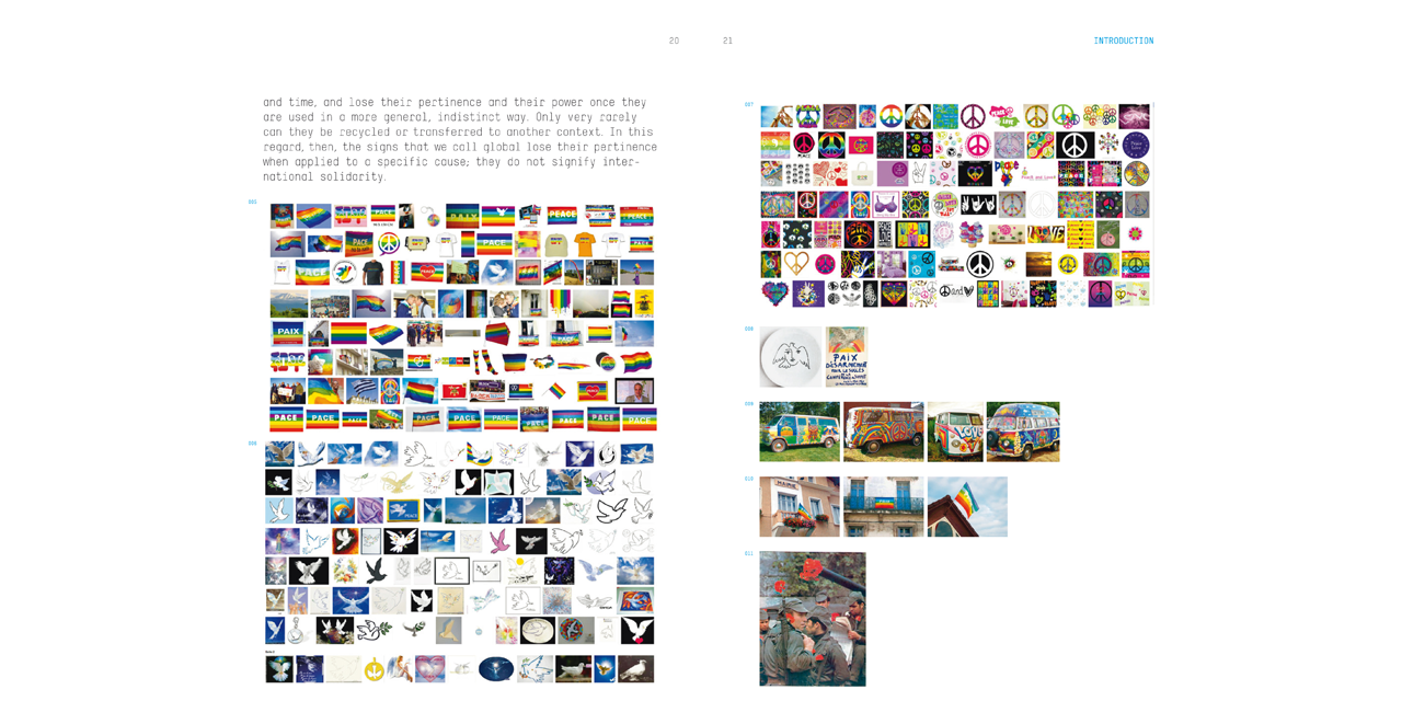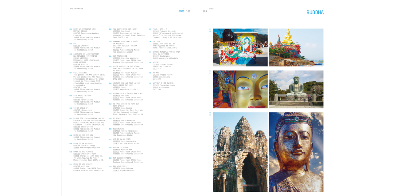 Can one visualize peace? Are there signs, symbols, and images that present a positive image of peace as opposed to receiving their meanings in opposition to war? Over several years of research, the Design2context institute has intensively examined the representation and representability of peace and has compiled a comprehensive collection of images. In order to include a number of historical, cultural, and political perspectives, the archival aspect was supplemented by workshops in crisis regions. The encyclopedia—which, as changed sociopolitical situations continue to arise and call for new pictures, must inevitably remain incomplete—provides a broad overview of the iconography of peace, and is also intended to assist in gaining an understanding of the concept. This book represents a significant contribution to future discussions on the need and desire for peace in political and social life.