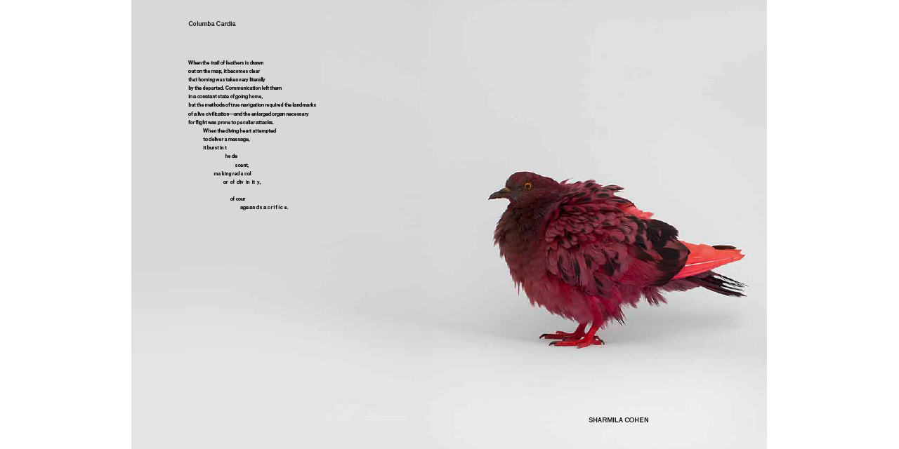 The glossy photographs of the pigeons are accompanied by notes, essays and illustrations as well as interviews and conversations among artists such as Ai Weiwei and Olafur Eliasson.