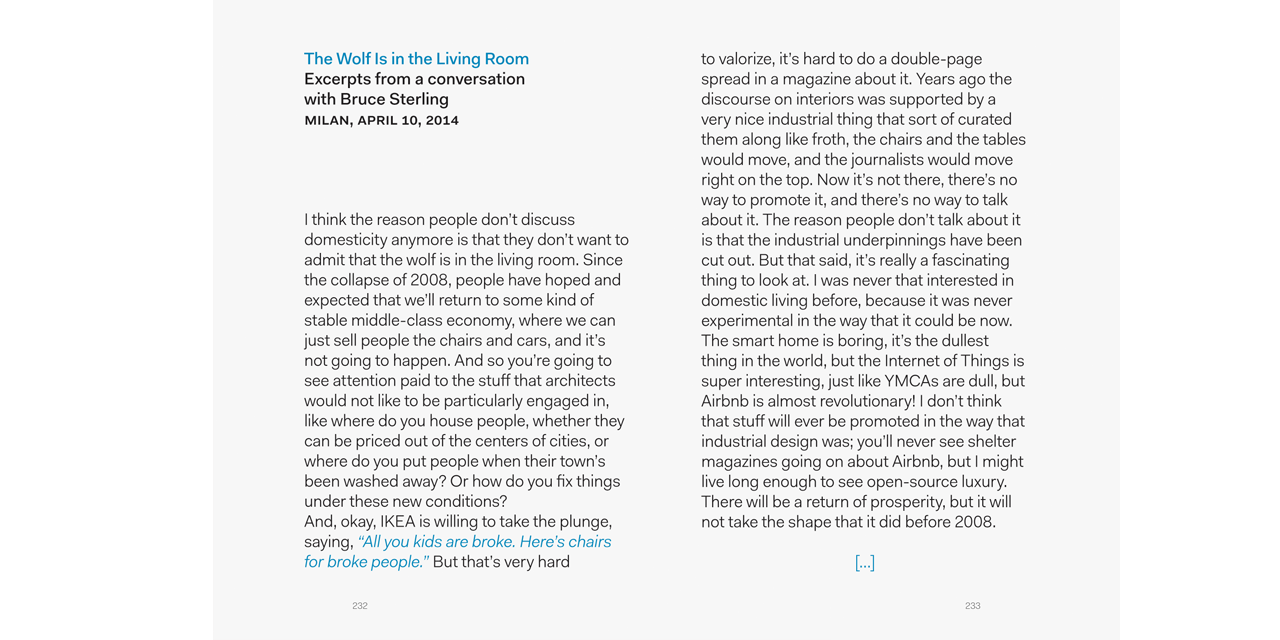 SQM, produced for the 2014 Biennale Interieur in Kortrijk, Belgium, charts the scale of this change using data, fiction, and a critical selection of homes and their interiors – from Osama bin Laden’s compound to apartment living in the age of Airbnb.