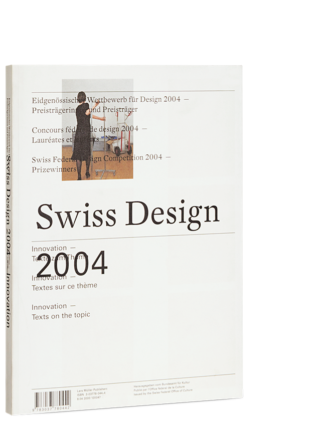 The Swiss Federal Office of Culture presents the 20 winners of the 2004 national design competition and the prize-winning works, with illustrations and a descriptive essay by the jury, in a publication called Swiss Design 2004: Innovation. The book focuses on innovative aspects of single works by these young designers within a framework of individual interviews.