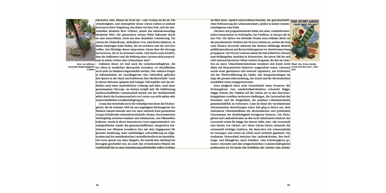Franziska Bark Hagen und die in dem Buch vertretenen Autorinnen und Autoren suchen Lokalitäten auf, an denen die Handlungsanweisungen von gärtnernden Soldaten, betenden Muslimen und aktionistischen Gärtnern das Paradies als die ultimative Utopie vom perfekten Leben immer wieder neu entstehen lassen.