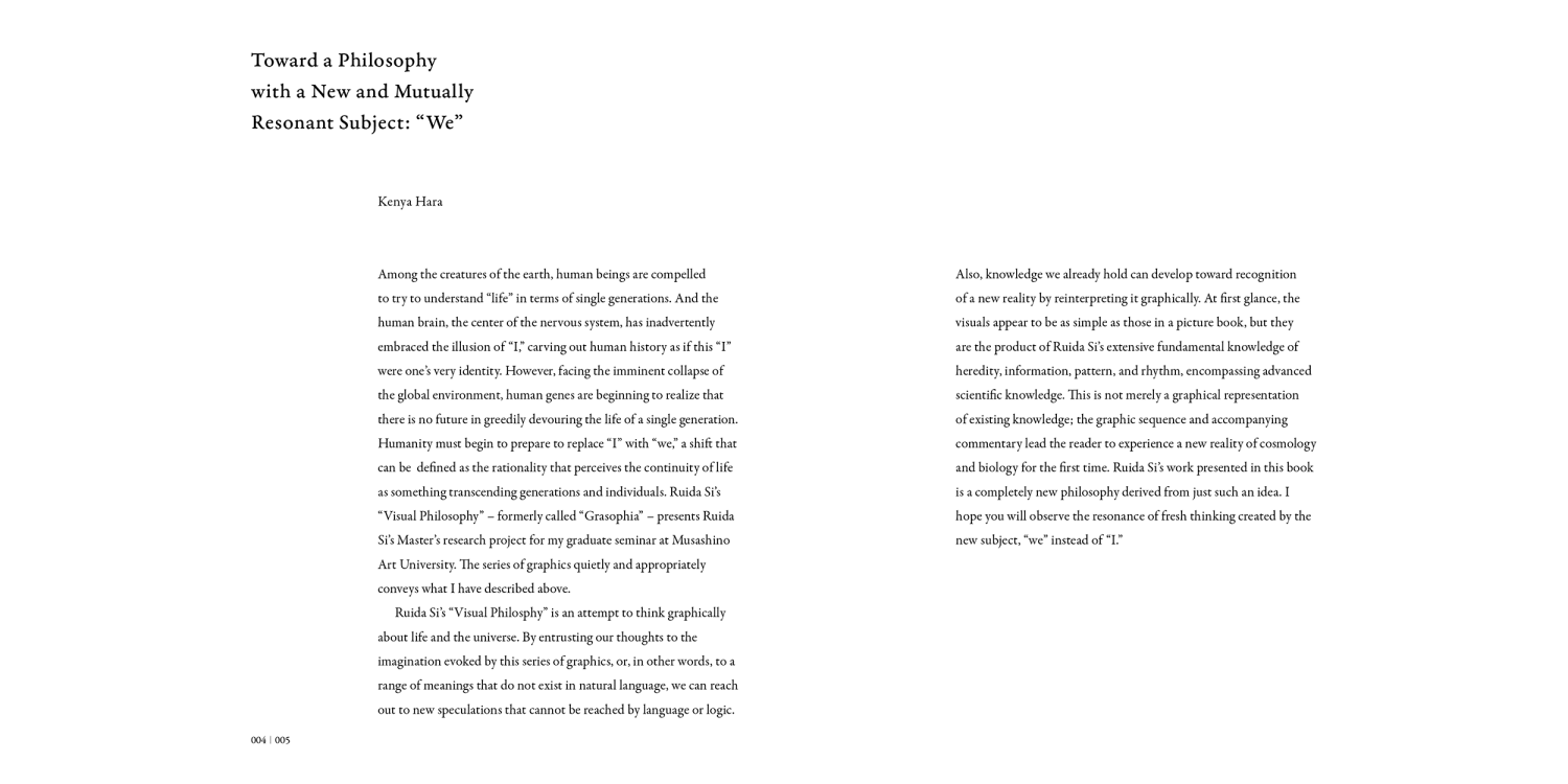 The simple and clear visuals are the product of Si's extensive and sophisticated knowledge of information, pattern and rhythm – and they deliver her message with great clarity and simplicity. Muji art director Kenya Hara, with whom Si studied, provided a foreword.