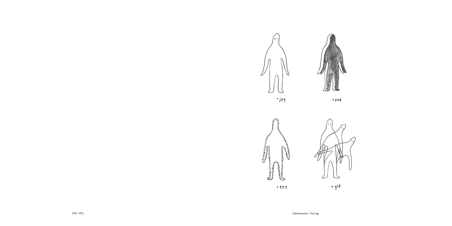 This book is an attempt to think through life and the universe in graphic-design terms. With concise drawings and brief texts, illustrator and designer Ruida Si quietly shows humanity in the grip of a dawning realization about its own collectivity. Facing the imminent collapse of the ecosystem, humanity must prepare to replace “I” with “we” – “we” defined in a utopian spirit as a subject transcending generations and individuals.
