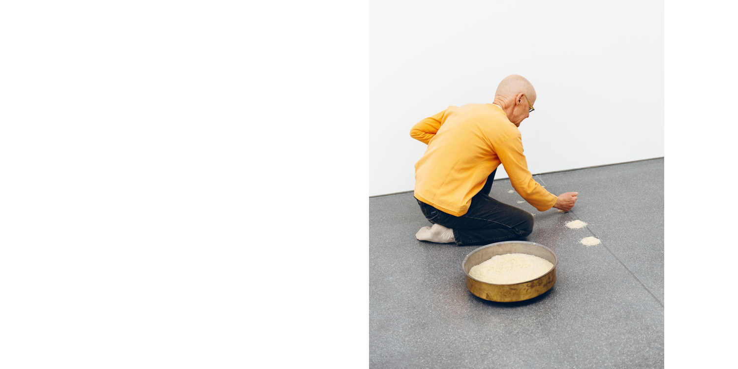 Wolfgang Laib's work is characterised by a profound relationship with nature and a declared belief in simplicity. Until today, the artist concentrates on just a few cyclical groups of work. Ever since his journeys to India as a young medical student in the 1970s, Laib is inspired by the notion of seeing humans as part of a larger whole. Having decided to work exclusively as an artist from then on, Laib followed this way of life in his art. The quiet power of his interventions asserts itself in his choice of natural materials such as pollen, wax, milk or rice and their use in a very reduced visual language.
